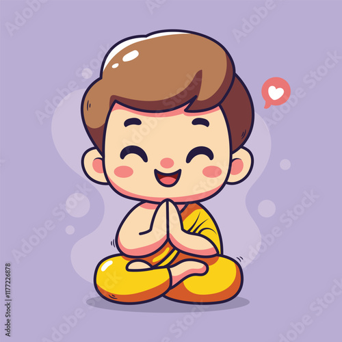 Cute boy meditating in lotus position cartoon vector illustration graphic design
