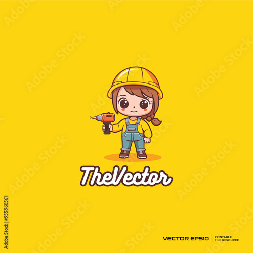 logotype, vector, mascot, character, cartoon, illustration, children, person, contractor, engineer, professional, service, builder, female, woman, construction, cute, design, girl, men at work, hat, helmet, job, logotype, business, carpenter, happy, industry, isolated, equipment, icon, background, flat, costume, engineering, friendly, human, maintenance, profession, repair, sticker, tool, uniform, drawing, funny, fun, holding