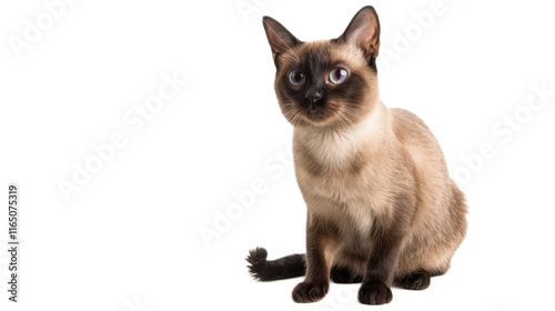 Cute Burmese Cat Sitting on Isolated Background with Playful Expression and Soft Fur Texture