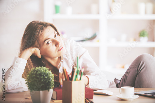 woman, portrait, workplace, attractive, young, female, businesswoman, girl, office, beauty, happy, smiling, cheerful, thinking, adult, work, job, successful, employee, confident, face, white, european, caucasian, pretty, beautiful, gorgeous, modern, entrepreneur, business, people, professional, person, men at work, executive, looking, smart, casual attire, lifestyle, lady, blond, sitting, desk, laptop, technology, supply, item, hot drink, cup