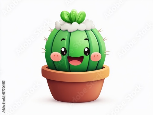cactus, plant, pot, cartoon, cute, character, illustration, design, graphic, digital, art, nature, green, happy, smiling, adorable, desert, succulent, pretty, image, fun, decorative, simple, drawing, small, cheerful, whimsical