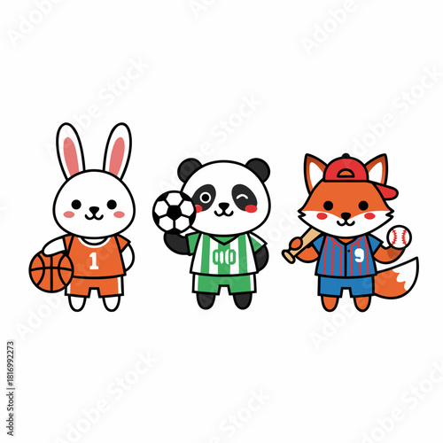 animal, cartoon, cute, sport, rabbit, panda, fox, basketball, soccer, baseball, uniform, ball, bat, player, game, team, mascot, character, illustration, graphic, vector, drawing, happy, playful, fun, children, children, activity, athletic, competition, championship, league, field, court, stadium, fan, hobby, leisure, recreation, exercise, fitness, health, active, training, practice, event, match, contest, winner