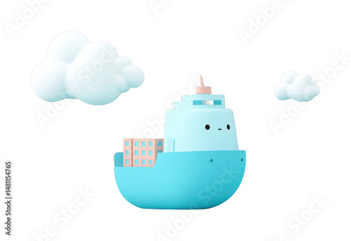 cartoon, ship, blue, cloud, cute, boat, adorable, sea, vessel, maritime, nautical, floating, sky, cloud, playful, whimsical, animated, character, smiling, childish, graphic, fun, illustration, design, creative, journey, travel