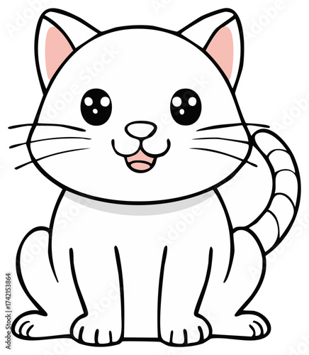 Cute Cartoon Cat Illustration Adorable White Kitten with Big Eyes and Striped Tail Sitting Still