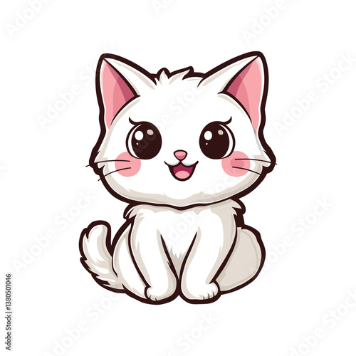 Cute Cartoon Cat Vector Illustration with Happy Expression. Adorable cartoon cat with big eyes and a joyful expression captured in a playful vector illustration. The happy feline features a white fur