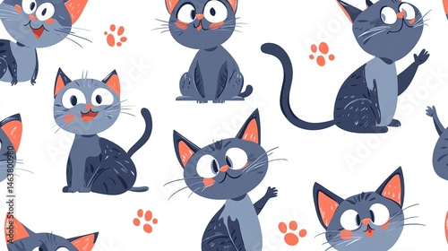 cat, cat, kitten, kitten, cartoon, cute, seamless, pattern, animal, pet, funny, adorable, fluffy, playful, happy, character, design, illustration, background, texture, fabric, wallpaper, children, children, baby, vector, graphic, art, drawing, image, digital, print, whimsical, paw, paw, tail, white, orange, blue, grey, repeating, surface, design element