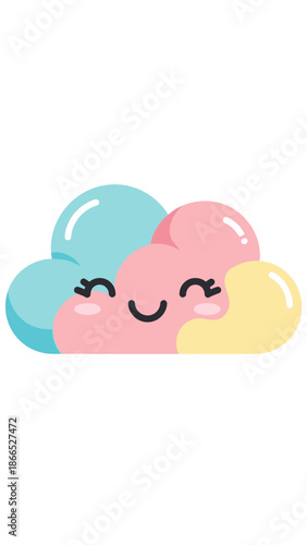 Cute cartoon cloud with happy face, pastel colors, vector illustration