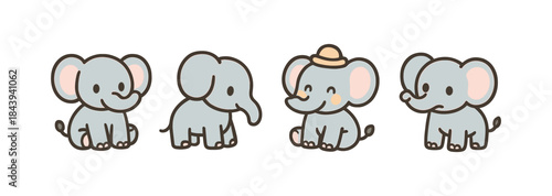 Cute cartoon elephants: adorable character collection with playful hat