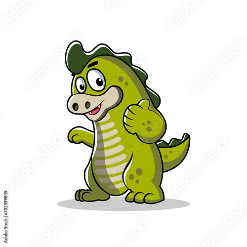 dinosaur, mascot, cartoon, thumb up, alligator, crocodile, lizzard, green, vector, character, cute, happy, smiling, approval, good job, success, animal, reptile, illustration, icon, logotype, children, children, toy, prehistoric, friendly, dino, funny, comic, design, graphic, cheerful, standing, tail, scale, positive, expressive, simple, isolated, wildlife, jaw, creature, brand, entertainment, education, jurassic