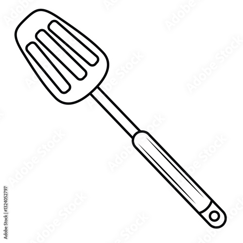 Cute cartoon hand drawn vector Grill spatula coloring page.