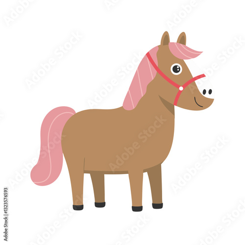 Cute Cartoon Horse with Pink Mane Vector Illustration for Kids