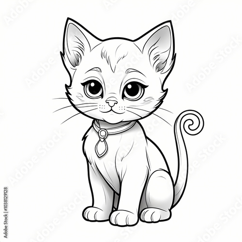 kitten, cute, cartoon, black-and-white, line art, outline, drawing, children, playful, adorable, cat, animal, pet, fun, creative, simple, illustration, vignetting, character, children, printable, activity, felino, happy