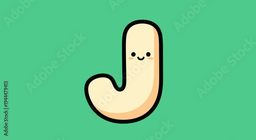 Cute Cartoon Letter J with Smiling Face