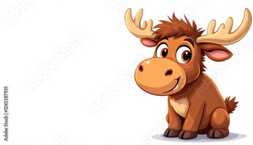 Cute Cartoon Moose Character Sitting with a Cheerful Expression for Graphic Resource and Text Overlay Purpose Purpose