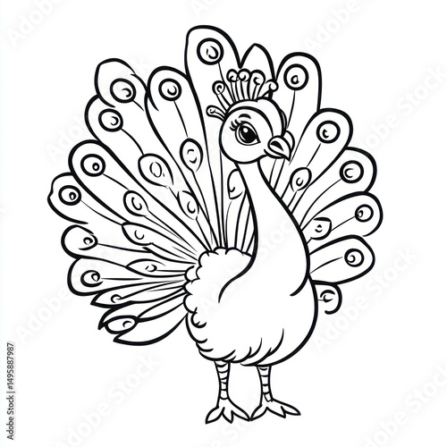 peacock, cartoon, cute, colouring, animal, drawing, outline, children, bird, illustration, children, book, image, graphic, black, white, design, art, nature, vector, isolated, print, decorative, printable, educational