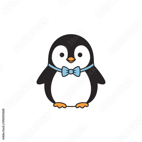 penguin, cartoon, cute, bird, animal, bow tie, blue, white, black, funny, character, illustration