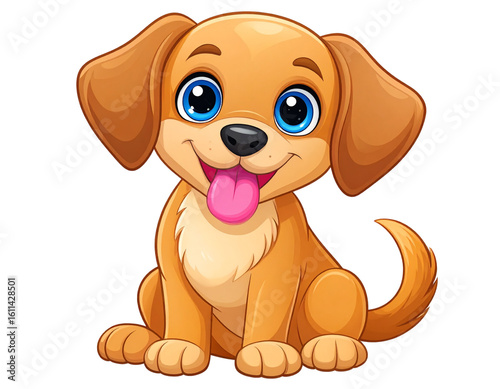 Cute Cartoon Puppy Sitting with Big Eyes and Tongue Out, isolated on transparent background.