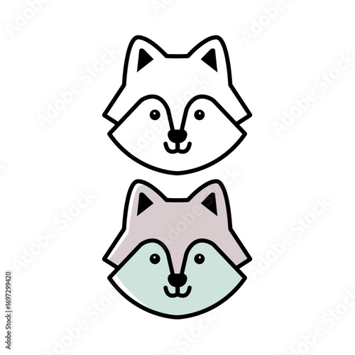 Cute Cartoon Raccoon Face Vector Illustration, Black and White and Color