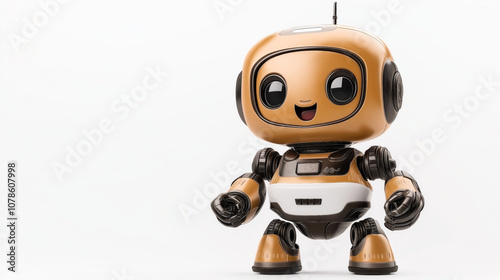 Cute cartoon robot with a smiling face and metallic body on a white background