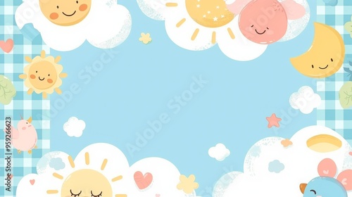 sun, moon, cloud, sky, bird, cute, cartoon, illustration, pastel, blue, yellow, white, happy, whimsical, childish, background, design, graphic, art, drawing, pattern, digital, vector, clip art, adorable, colourful, lovely, beautiful, sweet, fun, playful, dreamy, cheerful, joyful, positive