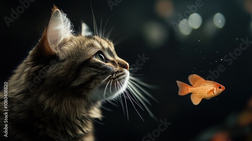Cute cat and fish