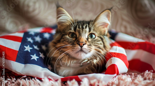 cat, pet, cute, wearing, american, flag, independence, memorial, democracy, american flag, america, us, wear, patriotism, 4th july, memorial day, us, us, patriot, victory, ai, generated, image, pride, proud, patriotic, african american, head, animal, domestic, mammal, eye, looking, eye, animal, closeup, pet
