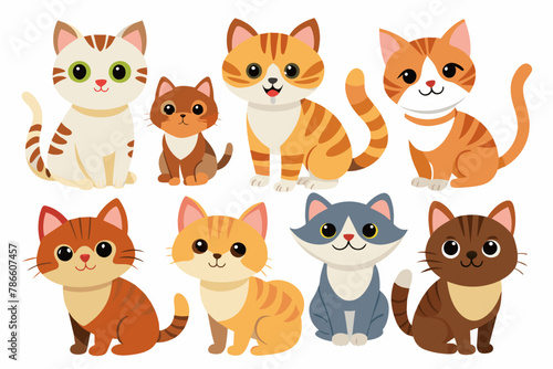 Cute cats and funny kitten doodle element vector. Happy international cat day characters design collection with flat color in different poses. Set of adorable pet animals isolated on white background