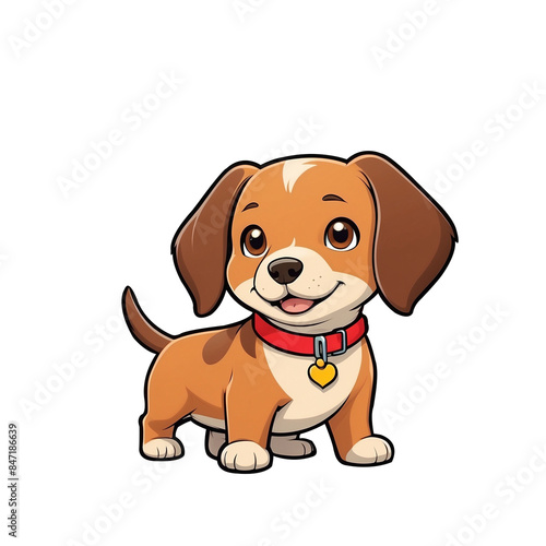 Cute Childish Kawaii Street Dog Puppy Character Sticker Standing with Big Round Eyes, Patchy Fur, and Playful Expression, Thick Black Outline, Thick White Offset, Generative AI.