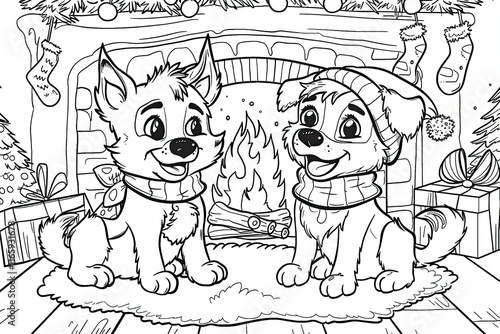 Cute Christmas coloring pages featuring animals in festive holiday setting