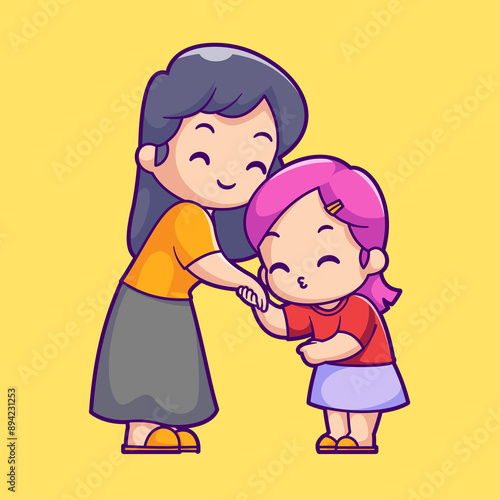 Cute Daughter Showing Respect to Mother Cartoon Vector Icon