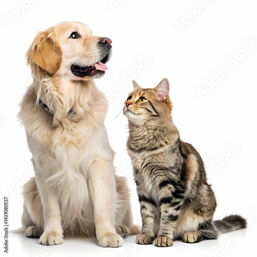 cute dog and cat together on white background