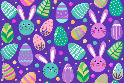 easter, rabbit, rabbit, egg, pattern, seamless, background, spring, holiday, celebration, pastel, colourful, cute, adorable, happy, illustration, design, texture, graphic, vector, easter egg, painted eggs, easter bunny, easter rabbit, purple background, seamless pattern, wallpaper, wrapping paper