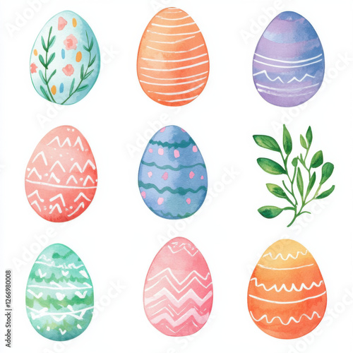 Cute Easter eggs Clipart, Pastel Watercolor Spring colorful eggs, Boho Nursery Graphic Set,