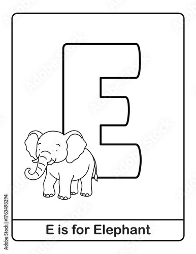 Cute Elephant with Letter E | Fun Hand Drawn Educational Coloring Page for Kids