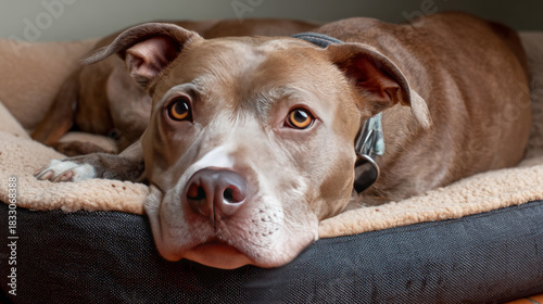 Cute fat dog sad because excess weight. Modern problem of obesity in pets due to overfeeding with food and treats. Concept diet and fight against excess weight in dogs and awareness of animal health