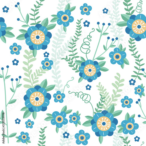 Cute floral seamless pattern. Vector background with flowers and leaves.