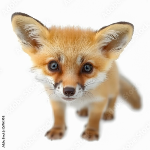 Cute fox looking at camera, isolated on a white background.