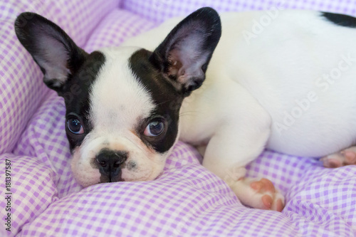 dog, bulldog, french, puppy, bed, animal, white, sleep, adorable, baby, pet, funny, portrait, cute, young, sleepy, black, sad, nose, head, little, lovely, domestic, pose, charming, friends, canino, dot, champion, ear, pedigree, doggy, happy, nature, sleeping, 1, space, bored, sweet, small, relax, look, posing, down, resting, tiny, foot, lie, lair, home