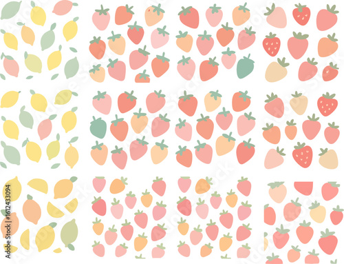 strawberry, strawberry, lemon, fruit, pattern, seamless, background, texture, pastel, cute, sweet, summer, food, vector, illustration, design, graphic, wallpaper, textile, fabric, print, surface, repeat, colourful, vibrant, fresh, healthy, organic, natural