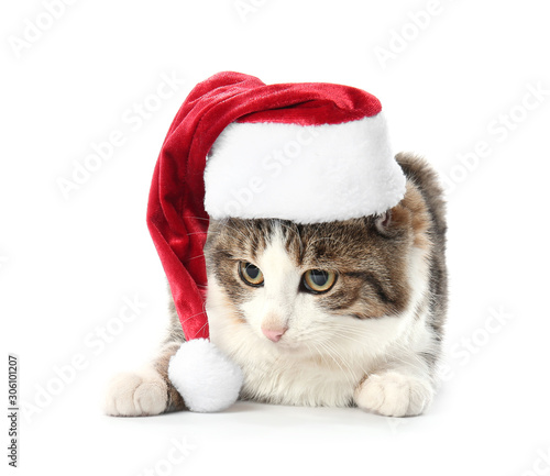 2020, animal, background, cat, cat, celebrate, celebration, christmas, claus, colours, cute, december, decor, domestic, felino, festive, fluffy, fun, funny, gift, greeting, happy, hat, holiday, isolated, joy, cat, lying, merry, new, pet, santa, season, white, winter, christmas, christmas, year