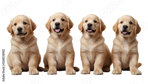 Cute golden retriever puppy set with four different expressions, charming baby dogs perfect for pet-themed designs