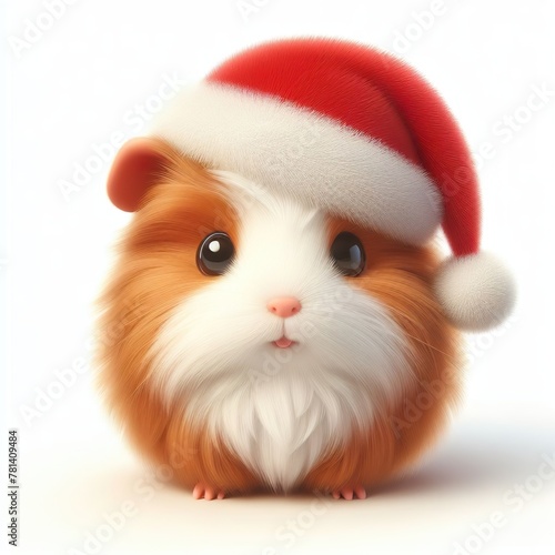 cute guinea pig wearing Christmas Santa Claus hat, kawaii