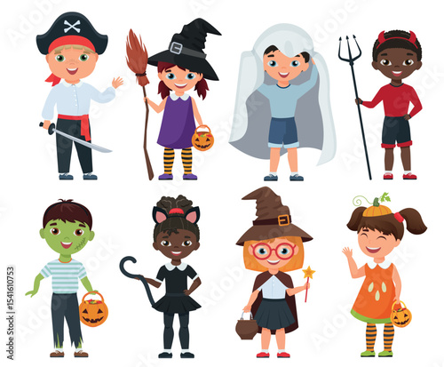 Cute Halloween kids set. Cartoon vector illustration isolated