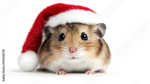 Cute hamster wearing a Santa hat, white isolate background.