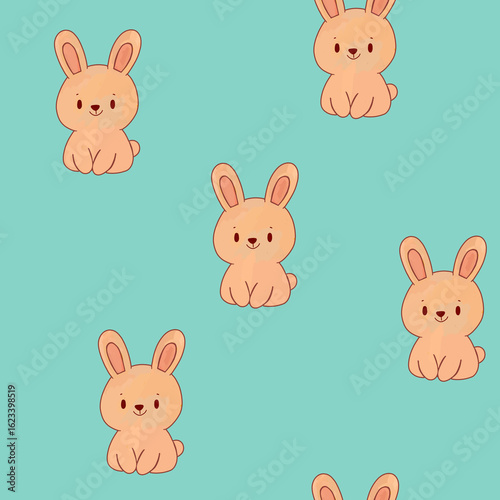 Cute hares and rabbits on blue background pattern. Baby animals wallpaper. Simple children's illustration for print clothes textiles