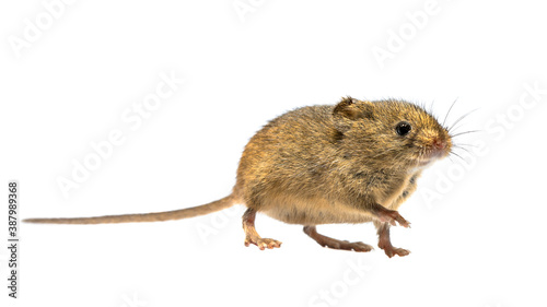 Cute harvest mouse isolated on white background