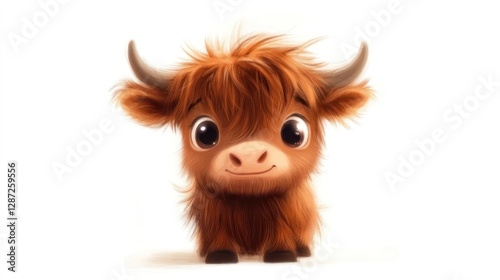 animal, cow, highland, calf, cute, cartoon, illustration, portrait, adorable, fluffy, plush, drawing, design, digital, character, children, children, children, art, animal, baby animal, brown, red, happy, smiling, face, eye, horn, poster, print, desktop, background, white, clip art, digital artwork, image, poster print
