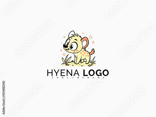 Cute hyena vector cartoon logo in black and white. A charming design ideal for playful branding, zoo books, baby product labels, stickers, or fun educational illustrations.