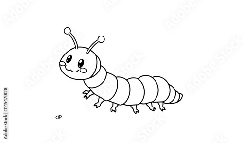 caterpillar, insect, bug, drawing, line art, black-and-white, antennae, leg, cute