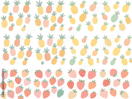 Cute Kawaii Pineapple and Strawberry Pattern 1.